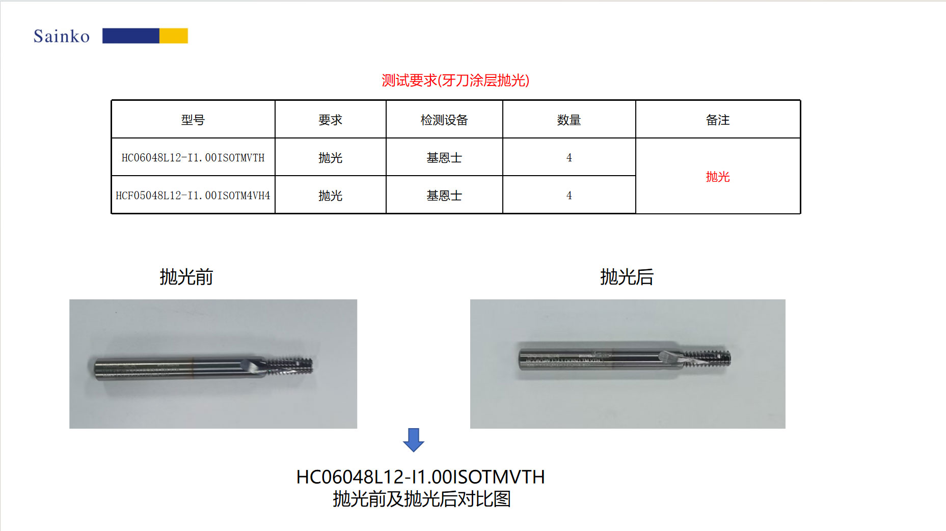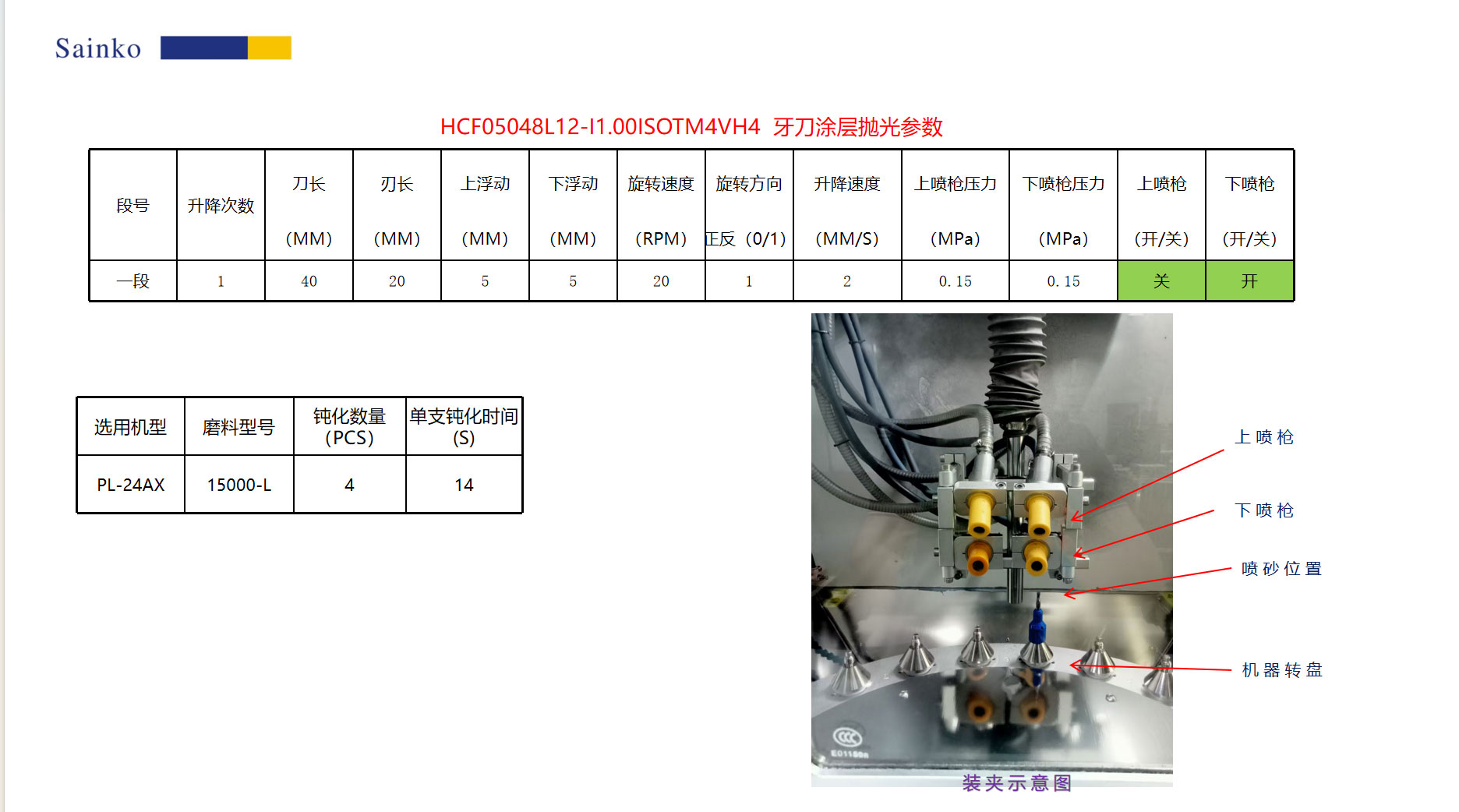 本次测试样品为客户提供的牙刀,型号 HCF05048L12-I1.00ISOTM4VH4和HC06048L12-I1.00ISOTMVTH共 8 件,需求为涂层抛光处理。采用 PL-24AX 型设备 搭配 15000-L 磨料,通过对 转速(20 RPM)、喷枪压力(0.15 MPa)、升降速度(2 mm/s) 等参数的精准控制,进行精细化加工。