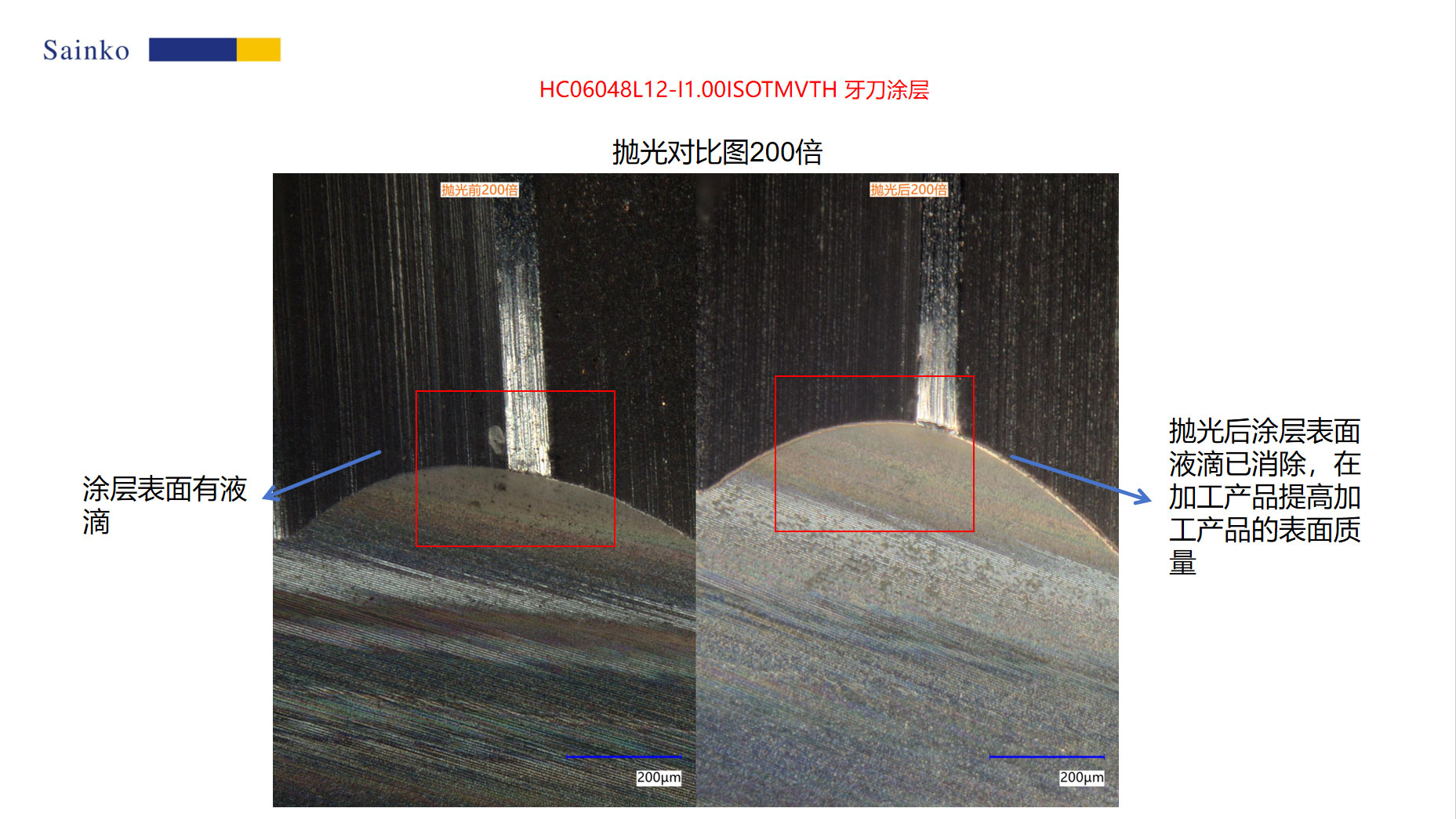 经处理后,铣刀涂层表面液滴完全消除,表面平整光滑,反射一致性显著提升。该工艺有效改善了涂层质量,提升了刀具稳定性与加工表面光洁度