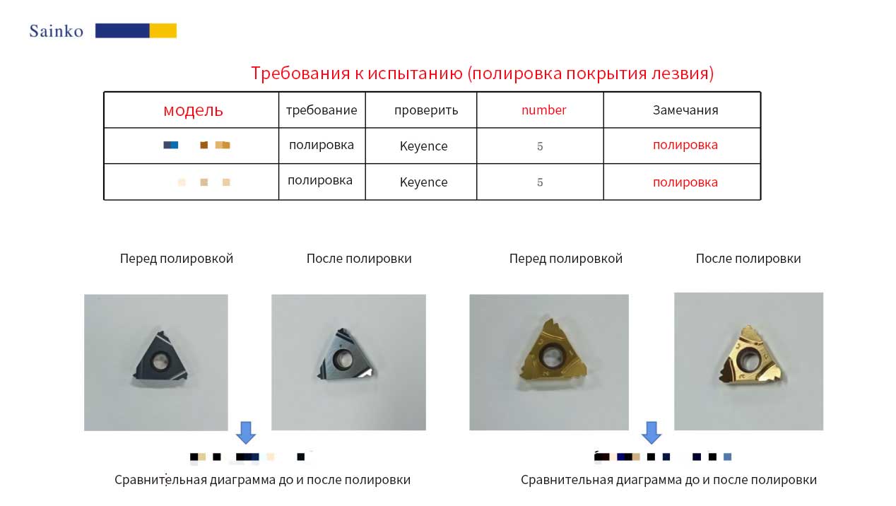 Этот тестовый образец предоставляет клиентам два гранулы ножа, каждый из которых имеет 5 штук, основные требования для полировки покрытия. Наш отдел использует оборудование PL - 12C и абразивный материал модели 15000 - L для обработки, для достижения удаления капель на поверхности покрытия, эффективно улучшает качество поверхности продукта. Подробная информация о результатах испытаний приводится в настоящем докладе.
