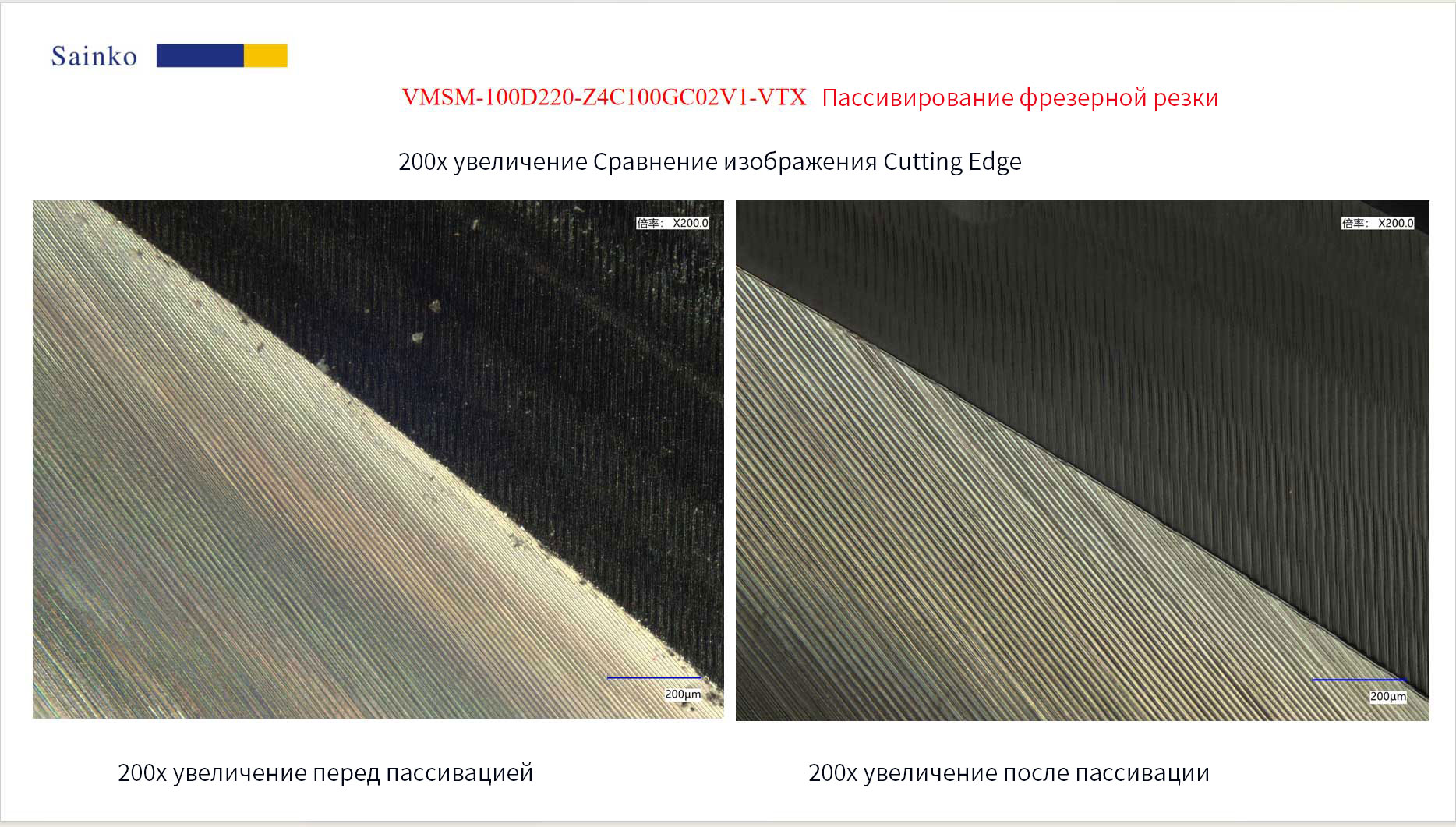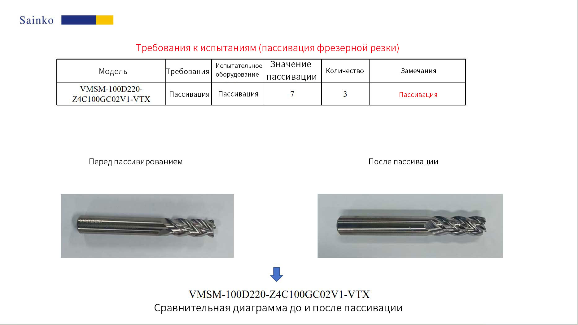 Этот тестовый образец поставляется заказчику фрезы модели VMSM - 100D220 - Z4C100GC02V1 - VTX, в общей сложности 3 штуки, основные требования для пассивации фрезы и четкое значение пассивации должно соответствовать стандарту 7 мкм. Для точного удовлетворения потребностей, наш отдел использует оборудование пассивации PL - 24AX и с абразивным материалом модели 15000 - L для обработки: через оборудование для точного регулирования скорости пассивации, давления и других параметров, в сочетании с точным абразивным действием абразива, значение пассивации последних трех фрез стабильно достигает 7 мкм заданных требований, в то же время устраняя первоначальное наличие зазубренных и заусенцев лезвия. После последующей проверки, пассивация фрезы в процессе резки и обработки может не только значительно улучшить качество поверхности обработанной продукции, но и оптимизировать эффект удаления стружки, эффективно уменьшить накопление стружки, проблемы царапин деталей, конкретные результаты испытаний подробно описаны в настоящем докладе.
