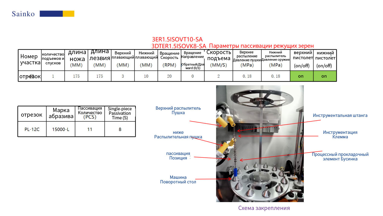 Проверка проводилась с использованием шлифовально-отполировочного станка PL-12C с применением абразива модели 15000-L для выполнения технологической обработки. Конкретные параметры показаны на рисунке. В соответствии с одноэтапной технологией установлено поддержание включенного состояния двух пистолетов, что в сочетании с вспомогательными приспособлениями, такими как технологические сепараторы шаров, обеспечивает стабильное закрепление абразивных гранул и равномерное пассивирование.