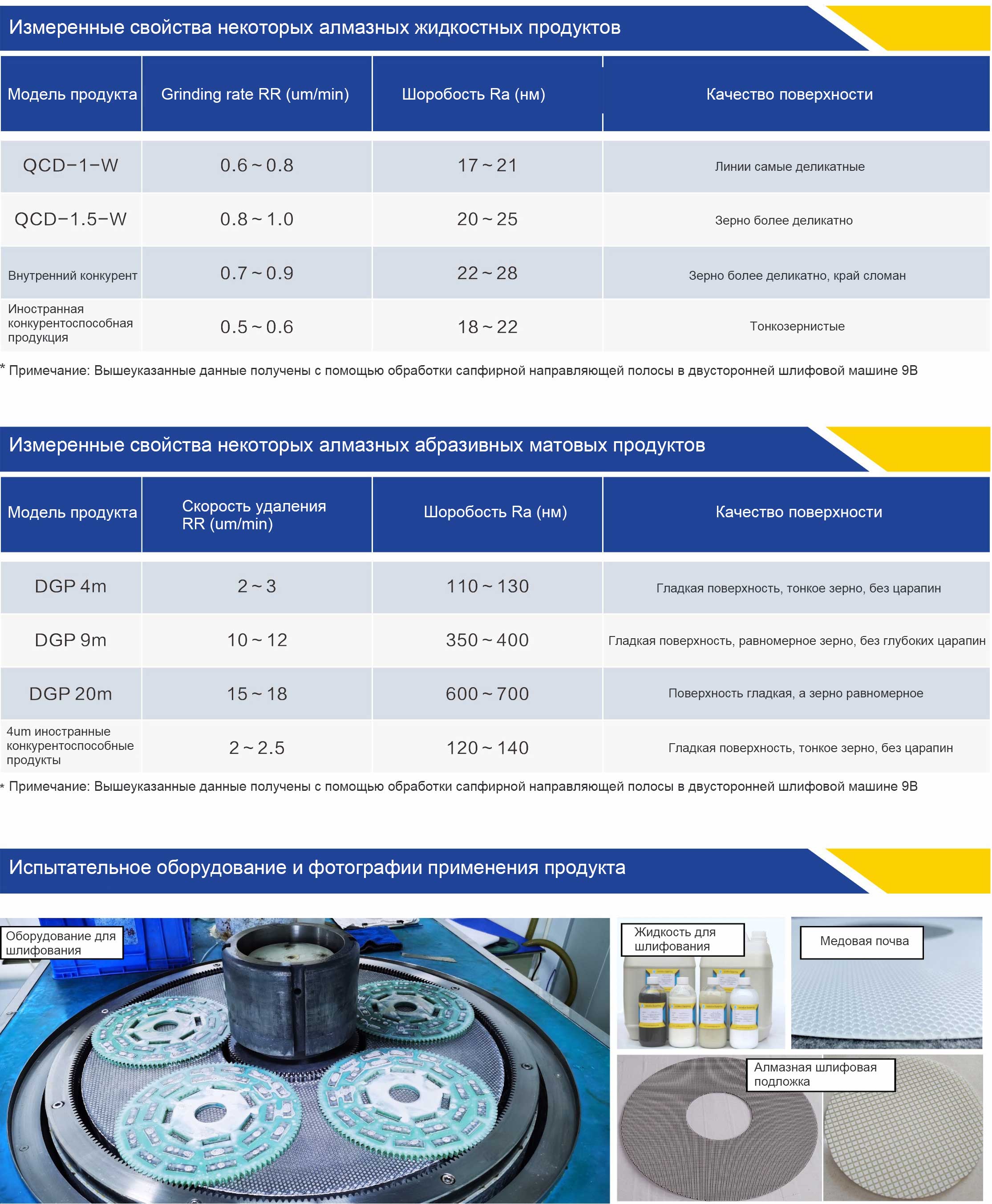 Порошок гранулированных алмазов, абразивная жидкость и абразивные прокладки